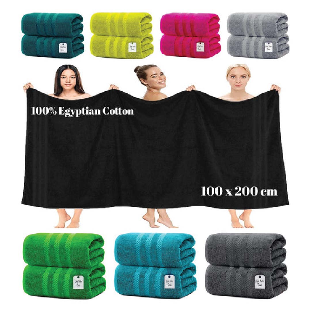 Pack of 2 Egyptian Cotton Bath Sheets with Super Jumbo Stripes 100 X 200 cm